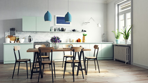- Træ – især lyse sorter som eg eller ask, der giver en naturlig kontrast.
